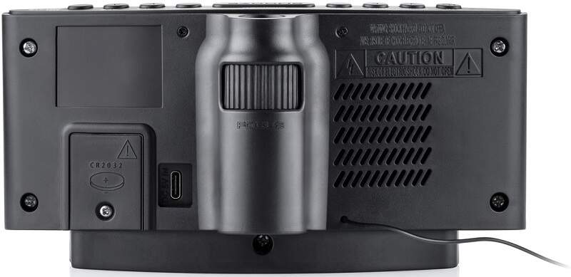Насладете се на простотата и практичността с този елегантен радиочасовник. Извитият 5,4-инчов LED дисплей с височина на цифрите 47 мм и функция Dimmer за регулиране на яркостта осигурява перфектна видимост както през деня, така и през нощта. Благодарение на функцията за проекция на часа, която може да се завърта на 180°, точният час винаги ще бъде пред очите ви. Идеален за спалня или офис.